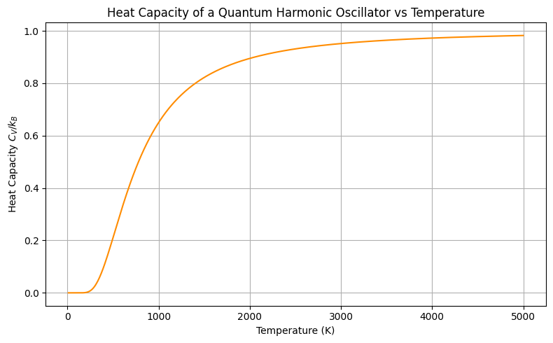 At low T: \(C_V \to 0\) — the oscillator is frozen in its ground state.