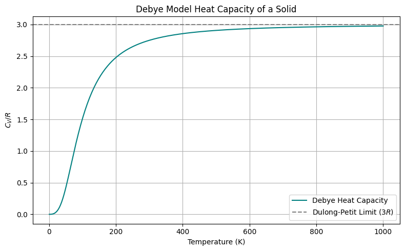 plt.axhline(3, color='gray', linestyle='--', label="Dulong-Petit Limit ($3R$)")